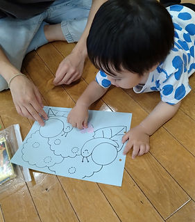 様々な素材を使うことで触感を楽しんだり、道具を使ったり、指先を使うことの楽しさと使い方を身につけていきます。
